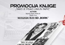 Promocija knjige “Tako je pisao Limun Papić”, autora Tatjane Papić-Džakula i Željka Tice biće održana večeras, 14. marta sa početkom u 18.00...