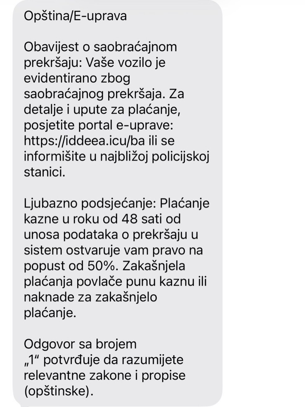 Podsjećaju da su za saobraćajne prekršaje nadležni organi Ministarstva unutrašnjih poslova, te da IDDEEA BiH nema nadležnosti u izricanju niti naplati kazni.